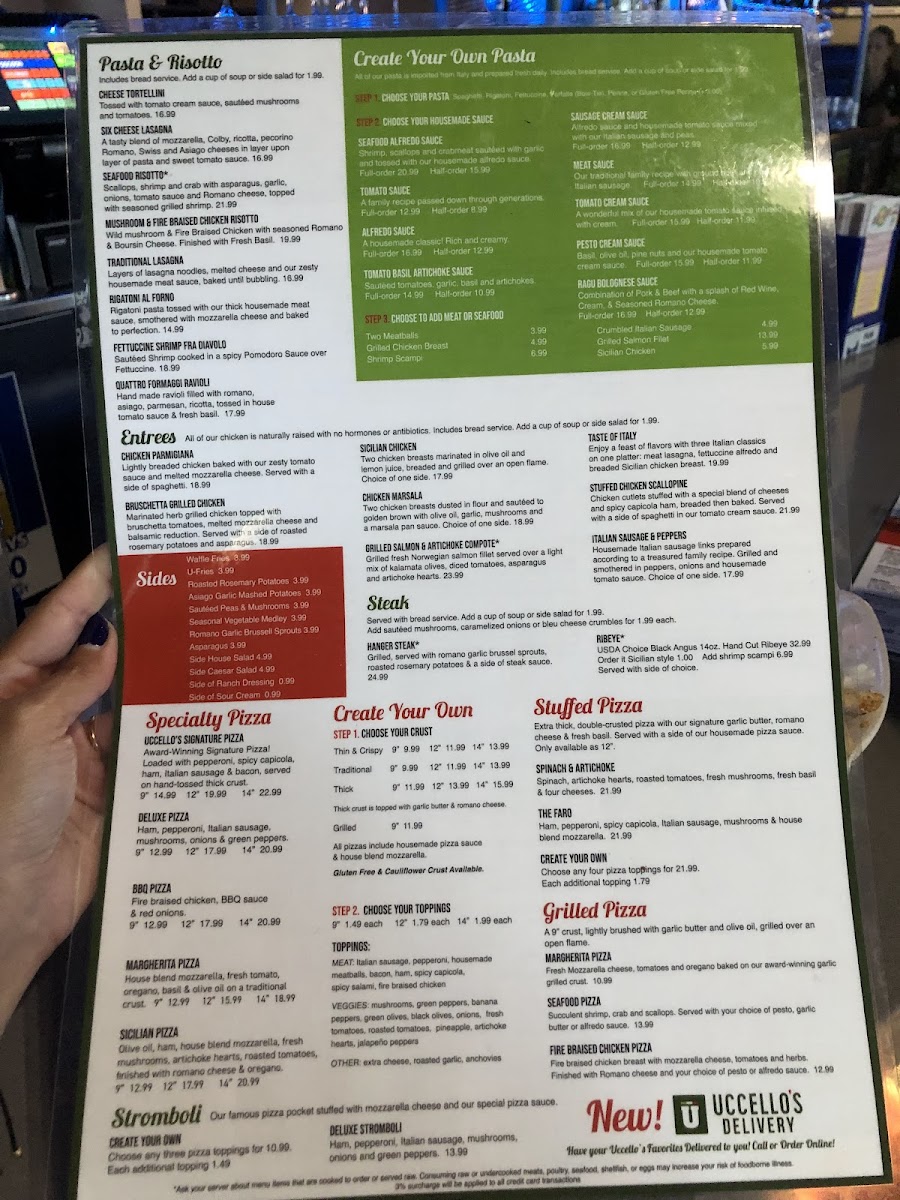 Uccello's Ristorante: Pizzeria & Sports Lounge - Standale/Walker Menu